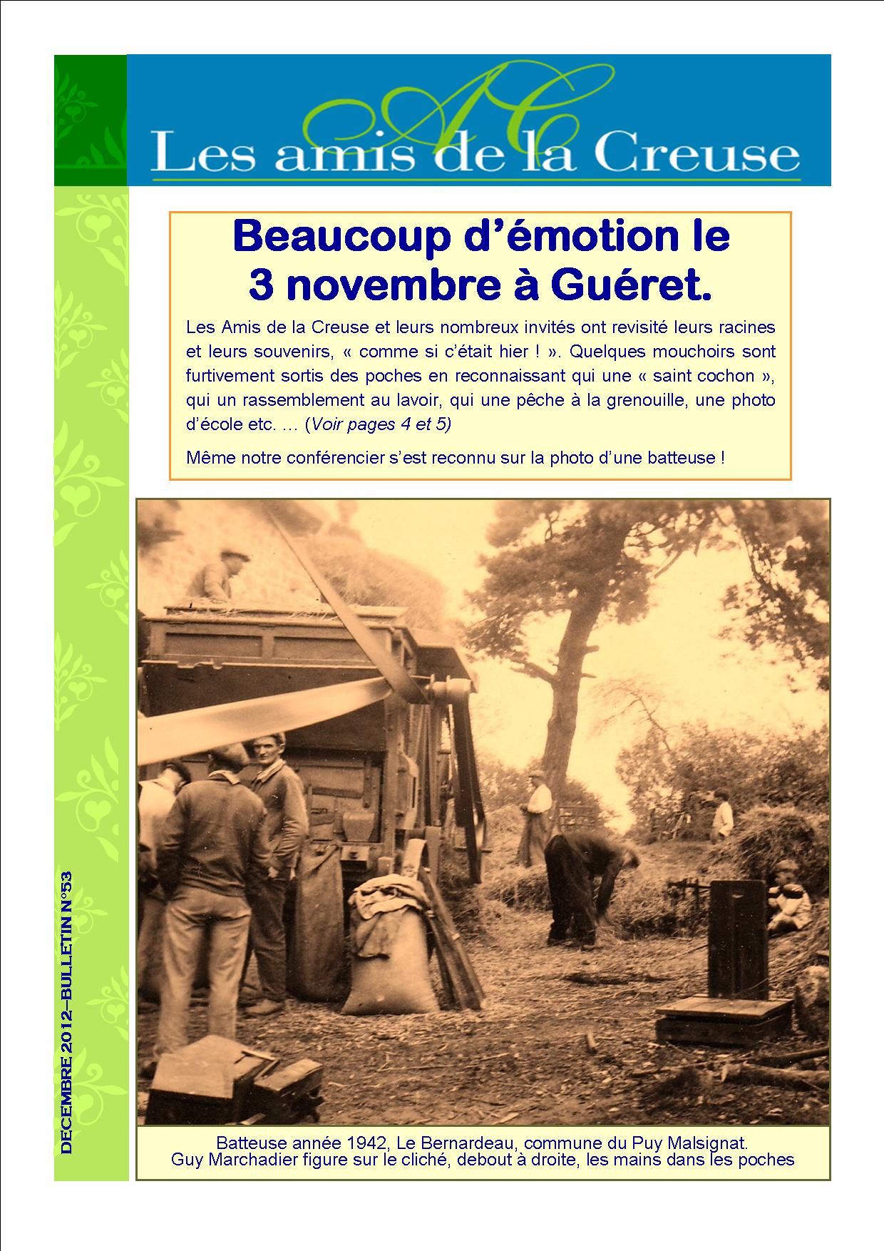 Nous publions régulièrement des dossiers qui font l'objet d'un tiré appelé "Cahiers des Amis de la Creuse" et traitant de sujets se rapportant à la Creuse et notamment concernant des creusois célèbres, d'évènements historiques, de sites d'activités remarquables, etc..